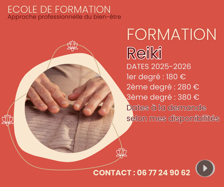 Vous pourrez découvrir les bases de la sophrologie, acquérir des connaissances solides en Réflexologie douce et obtenir les degrés Reiki primordiaux à vos projets.